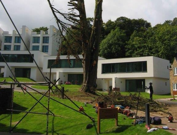 Tree Dismantlement, or sectional felling, is a more intricate process used when a tree is in a confined or hazardous location, such as near buildings, power lines, or gardens. Instead of felling the tree in one piece, it is removed in sections, starting from the top. Arborists climb the tree and use rigging equipment to lower each cut section to the ground carefully. This method is crucial in minimizing the risk of damage to nearby structures and ensures safety when dealing with large or awkwardly positioned trees.